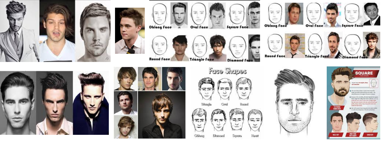 Some hair cut styles fit some  face shapes most. Some styles look better or worse based on your face shape. That is why you need a hair cut catalog and a good barber to do the job right. Check out some the hair cut styles recommended for different men’s face shapes in the screenshot below.
